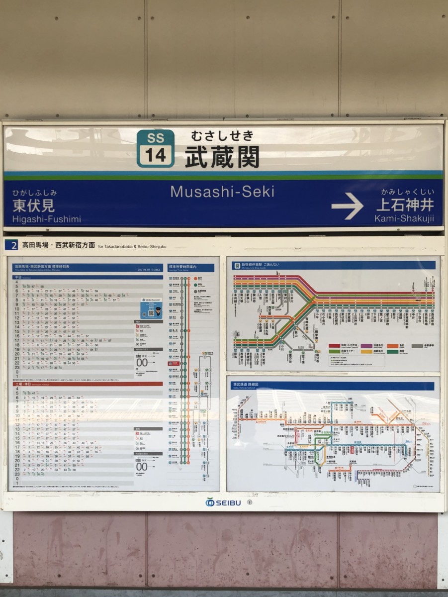 Musashi-Seki is in Nerima ward, north west of the centre of Tokyo on the Seibu Shinjuku Line. It’s not an express stop, so to get to Tokyo as fast as possible you need to ride the train one stop and change. If you’re heading in the other direction, there’s three or four stops between you and the next express stop up that way, Takanashi.