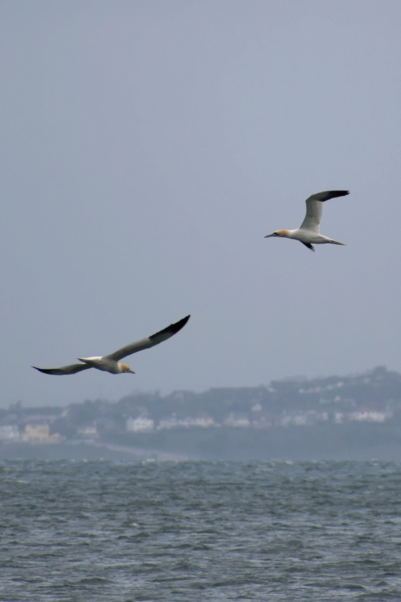 I think these are gannets. Although I didn’t know this until I came home and checked, so apologies if you’re the man with the dog who asked me if they were seagulls. The best answer I could do you at the time was the one you got – “pretty sure no, but I don’t know what they actually are.”