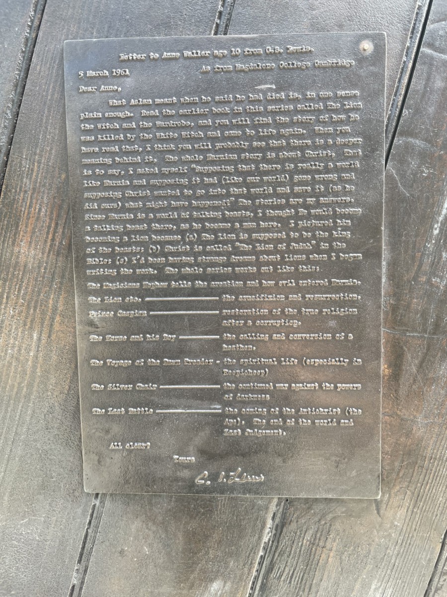 The back of the wardrobe has some very interesting details too: a letter to a fan from CS Lewis, a small piece about wardrobes and Aslan himself.