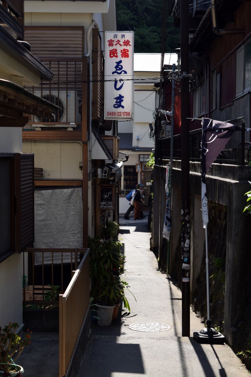 Once you leave Enoshima station, you can head straight down to the island, or if you fancy visiting Ryuko-ji -head in the direction of the monorail station, Shonan-Enoshima, then take a right and head down towards Koshigoe.