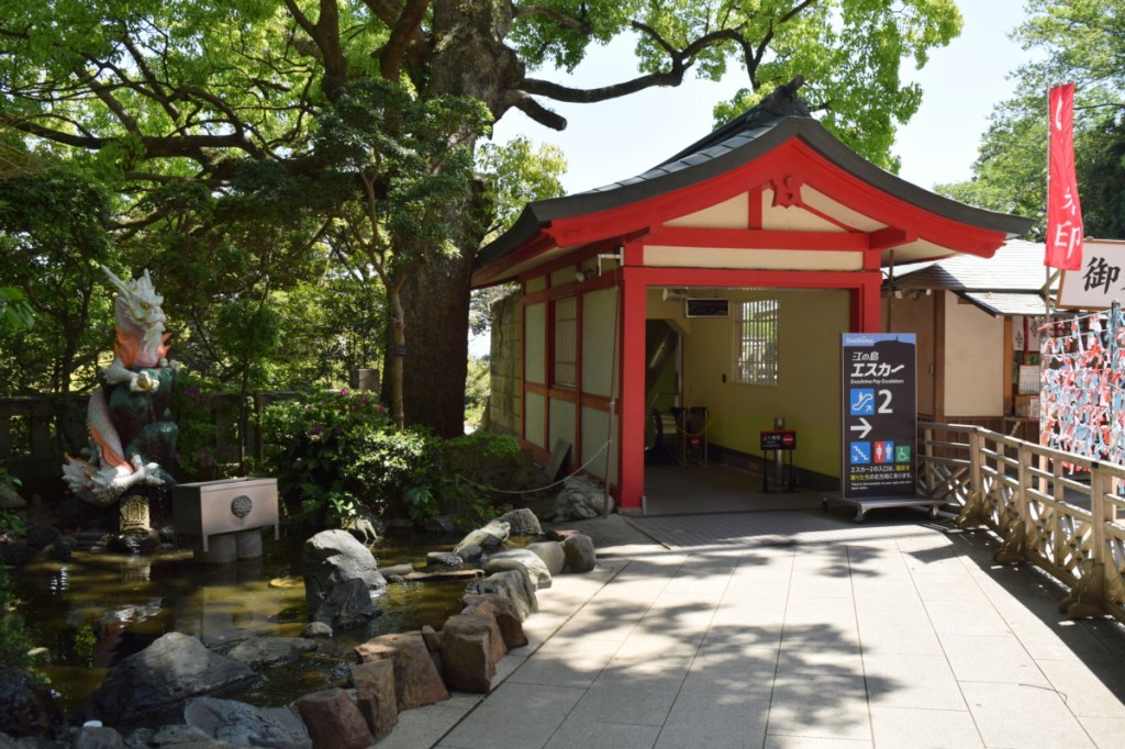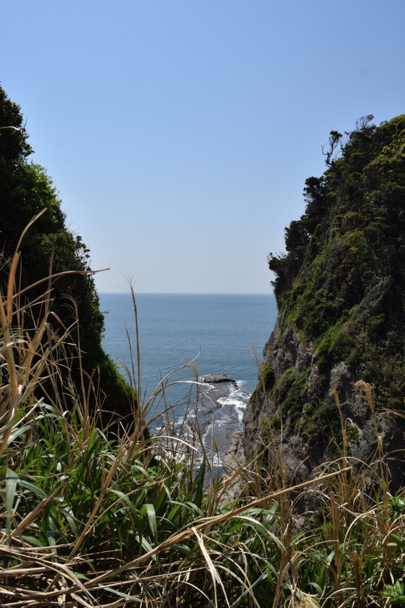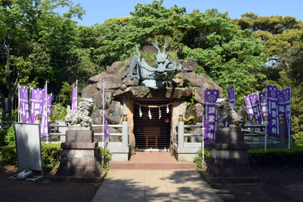 On a bit further from the Sea Candle, you’ll pass Yama Futatsu – the two mountains – which are exactly that: a pair of hills which drop down into the sea. A little further past them, you’ll reach the entrance to the last of the Benzaiten shrines, Okunomiya, which is accompanied by a little shrine to the dragon himself.