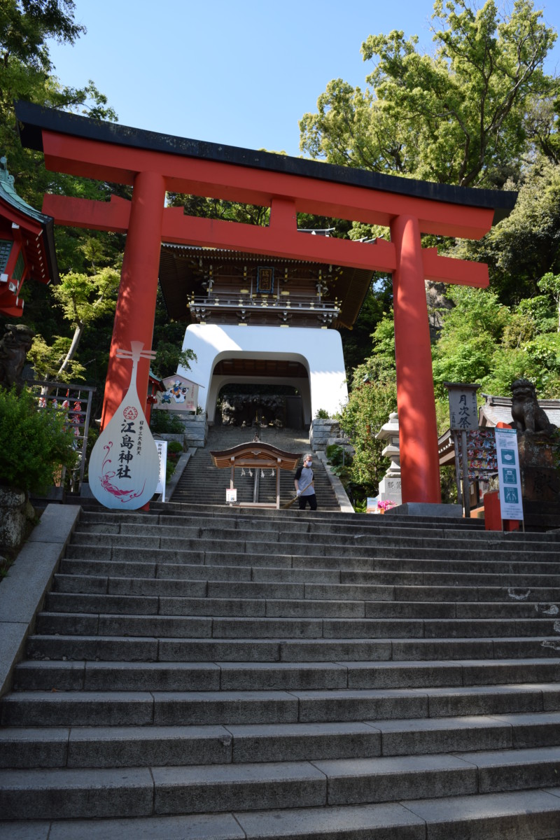 Enoshima is a pretty spiritual place – legend has it that it was raised from the ocean depths by the goddess Benzaiten to imprison a dragon who was bothering the local people. In extended versions of this story, the dragon falls for Benzaiten & changes his ways because of his love for her. Then they end up getting married.