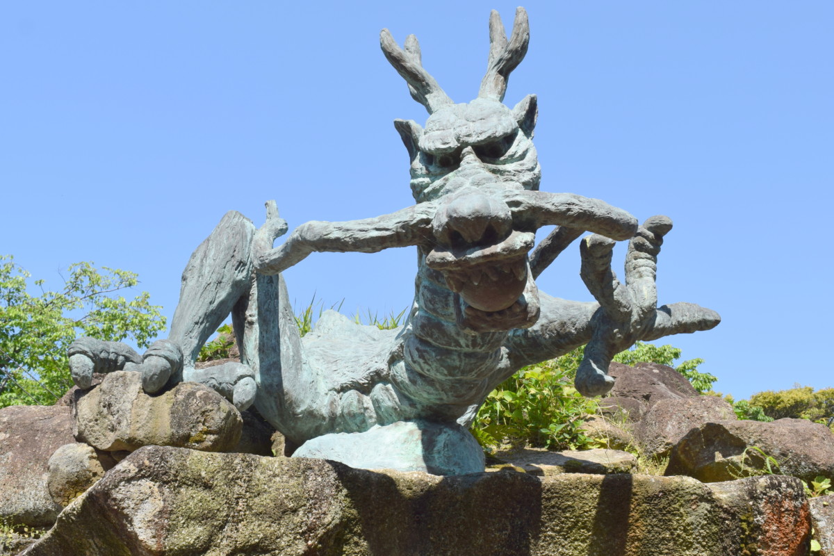 You can find a small statue of the dragon in the temple grounds: