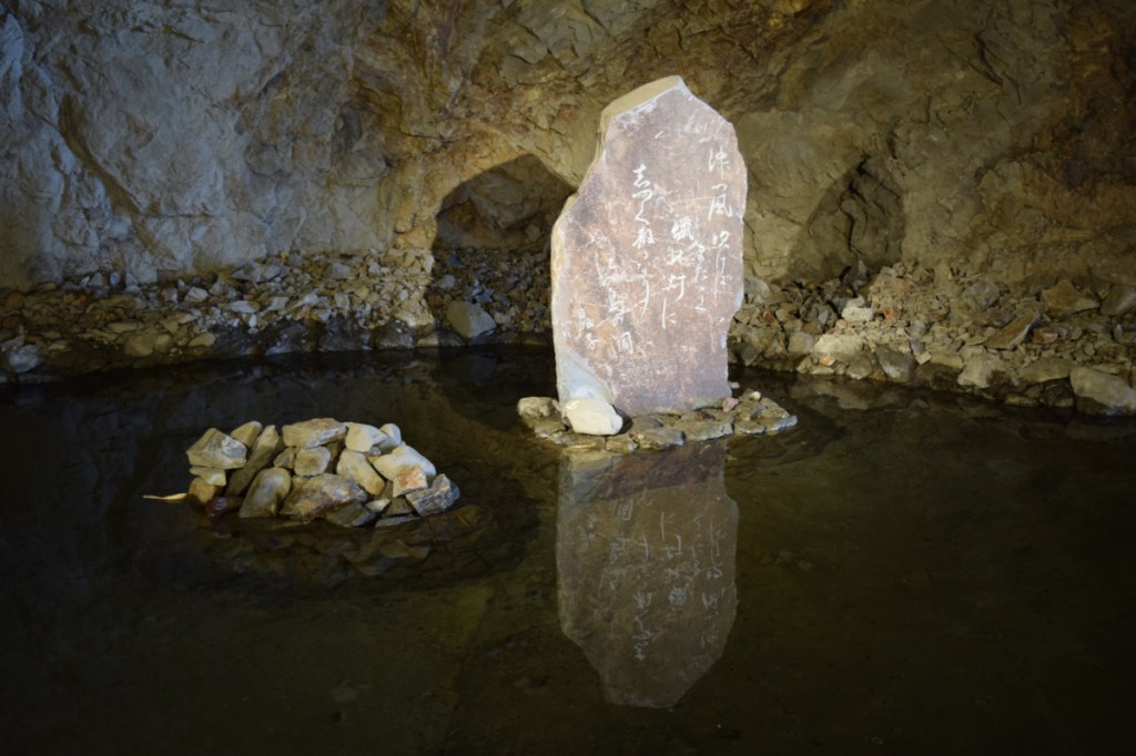 As you exit the caves back out into the sunlight and the rush of the ocean, you pass by a haiku, written by Yosano Akiko, carved into a slab of rock: