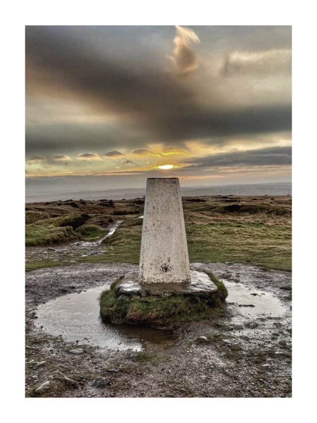 Unfortunately, my SD card decided it was happier at home than in my camera, so you’ll just have to make do with this image of the first sunrise of the year taken with my phone from Baildon Moor Trig Point.
