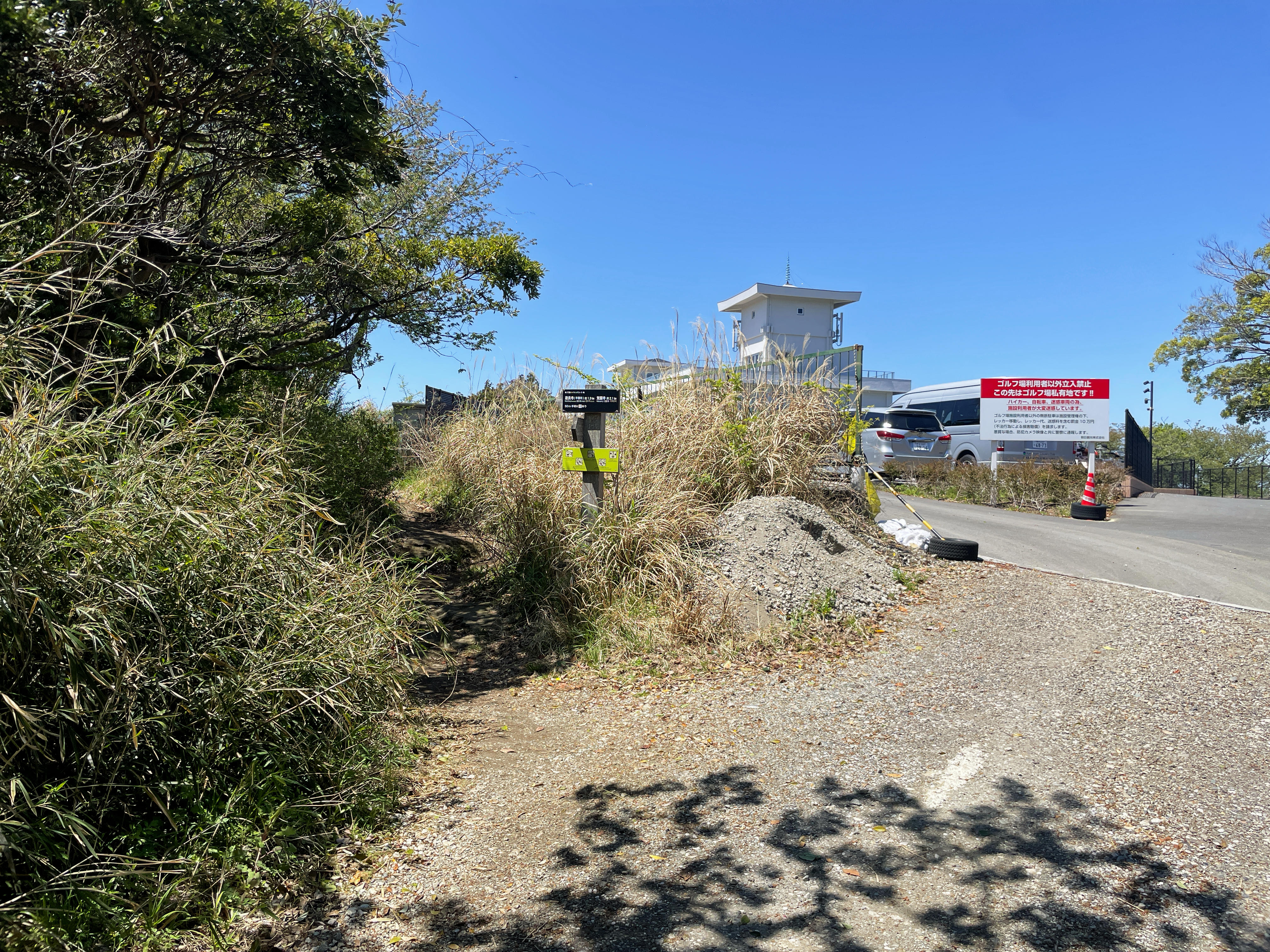The trail through Mount Enkai Citizen’s Forest (Enkaizan shuhen shimen no mori/ 円海山周辺市民の森) starts back at the coastguard transmitter, slightly off to the left of where you came up the hill.
