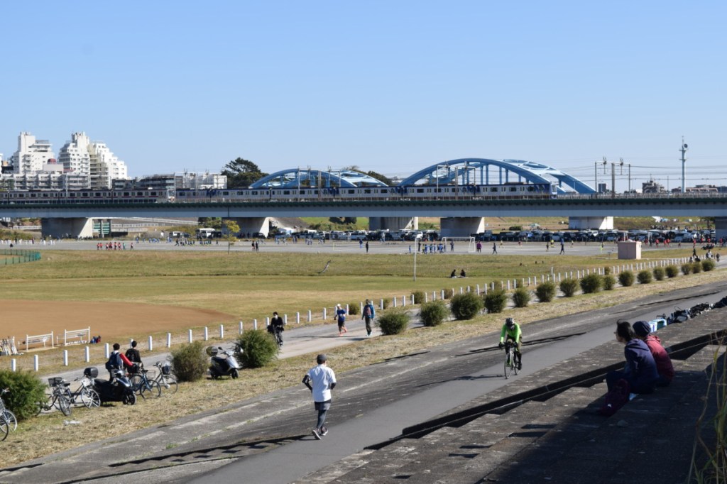 Both sides of this river are filled with parks and outdoor areas to enjoy, although the closer you get to Kawasaki city centre, the amenities tend to drop off in number and you’ll see a lot more homeless encampments.