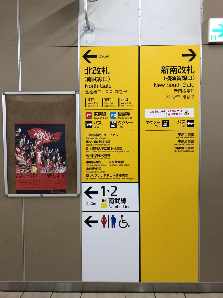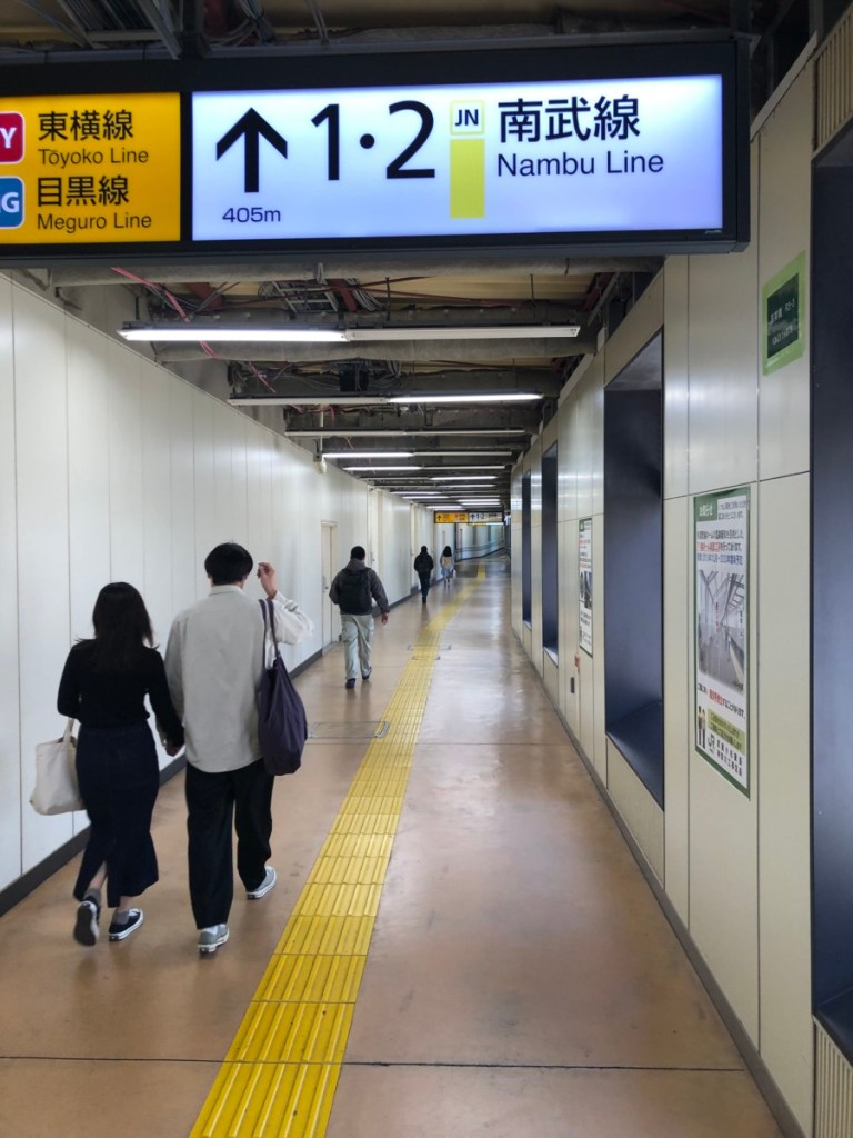 The elevated Yokosuka & Shonan Shinjuku line platforms are about 500m away from the Nanbu line; to get there requires a long, dull, depressing walk through gloomy tunnels that are too hot in summer and too cold in winter, underneath lighting that was perhaps military surplus, left over from a post-apocalpyse shelter project. The Nanbu line ticket gates and that general area are much more pleasant to travel through, but could probably do with a lick of paint.