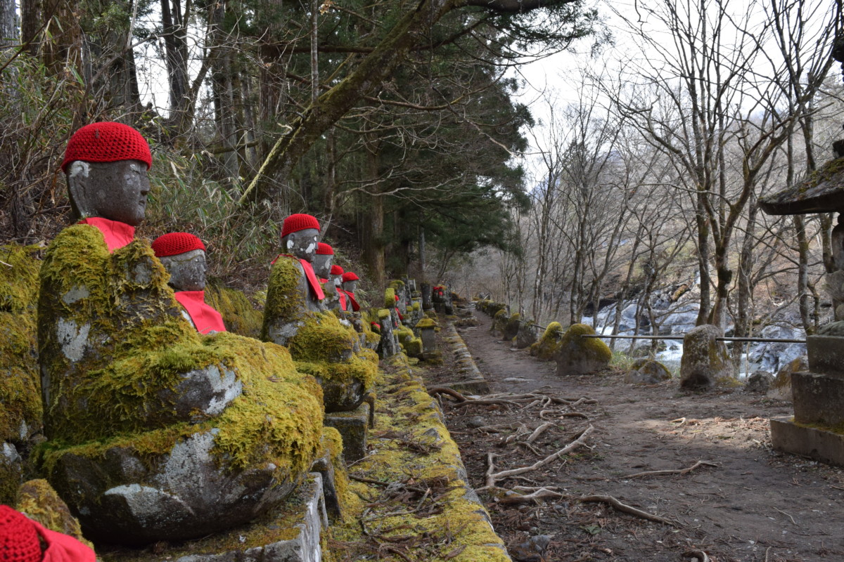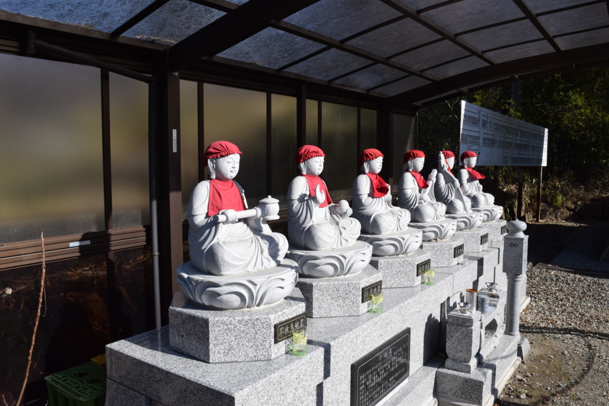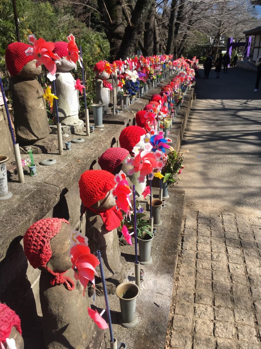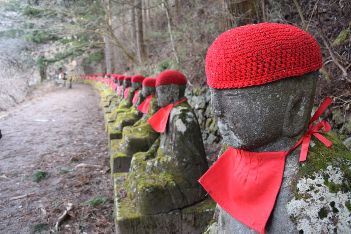 Jizo (地蔵/womb of the earth), as they are called, are made in the image of Jizo Bosatsu, guardian deity of children and travellers..
